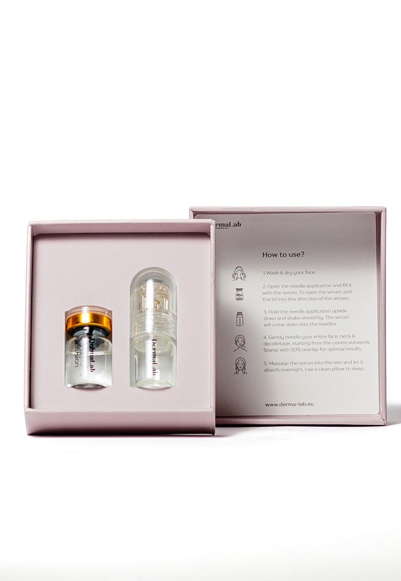 Deze innovatieve microneedling behandeling voor thuisgebruik, ontwikkeld in samenwerking met artsen, is volledig veilig, steriel en pijnloos. Je geniet van direct zichtbare huidverjonging, zonder een bezoek aan de kliniek.